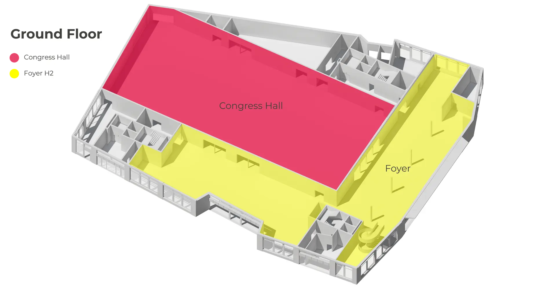 Das H2-Gebäude ist nicht nur ein architektonisches Highlight, sondern auch ein Zeichen für zukunftsweisende Baukonzepte, die ästhetische und funktionale Elemente auf harmonische Weise vereinen. Mit einer beeindruckenden Eventfläche von 3’500 m² zieht es alle Blicke auf sich. Im Inneren dieses modernen Bauwerks befindet sich eine multifunktionale Kongresshalle, die in Plenarbestuhlung Platz für über 1’900 Personen bietet. Diese grosszügige Kapazität macht sie zur perfekten Wahl für unterschiedlichste Veranstaltungen.